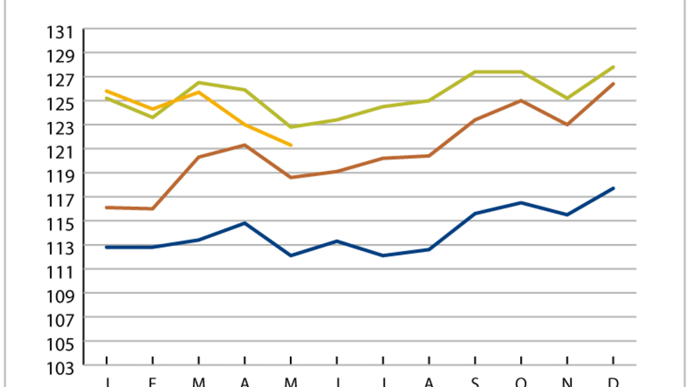 A measure of per-mile truckload linehaul rates declined again in April along with a separate gauge of intermodal shipping costs. And there is little to no indication conditions will soon improve.