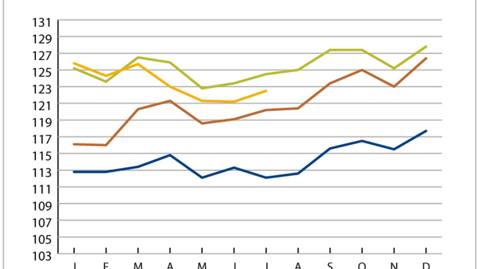 Truckload linehaul rates fell again in July from the same time a year ago, marking the fifth straight month of year-over-year declines, according to latest readings from the Cass Truckload Linehaul Index.