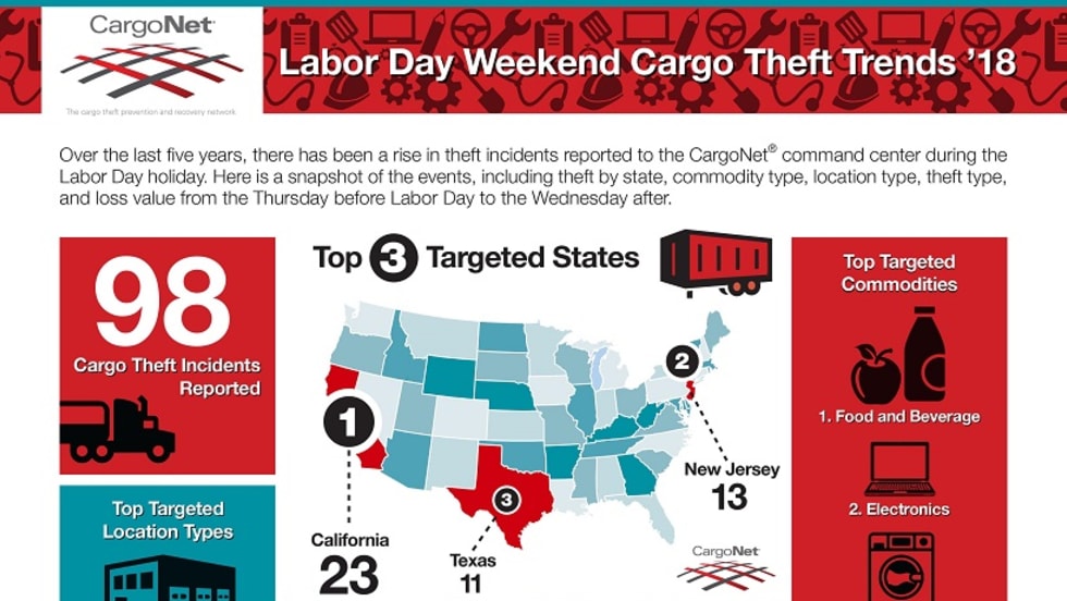 With unattended trucks and closed warehouse facilities, holidays present an opportune time for cargo theft. With the Labor Day weekend ahead, CargoNet has offered some security tips.