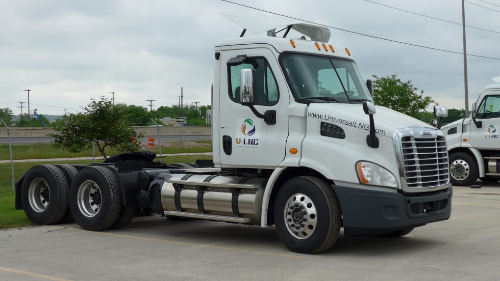 Houston-based Universal LNG Solutions Inc. unveiled four long-range Freightliner Cascadia heavy-duty trucks powered by liquefied natural gas (LNG) that will be used by at least two national logistics fleets, the company announced.