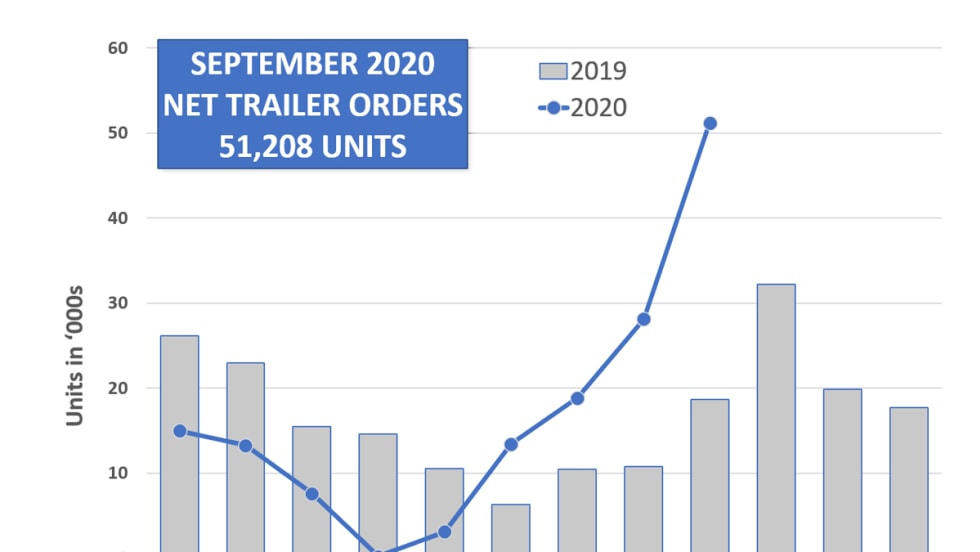 Trailer order saw another big leap in September, with net trailer orders increasing 82% over August with 51,208 units.