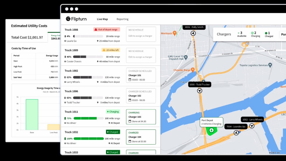 Flipturn's platform provides real-time data on battery-electric truck and charging performance that helps companies better manage their EV fleets.