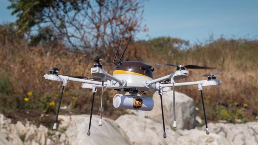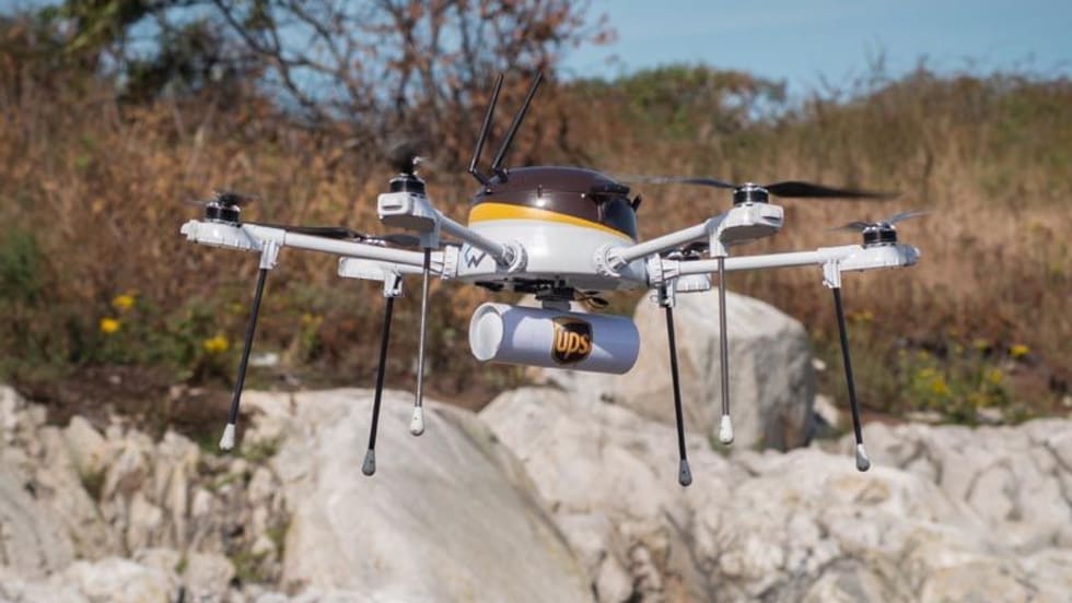 UPS staged a mock delivery of urgently needed medicine from Beverly, Mass., to Children’s Island using a drone delivery system it is testing with CyPhy Works.