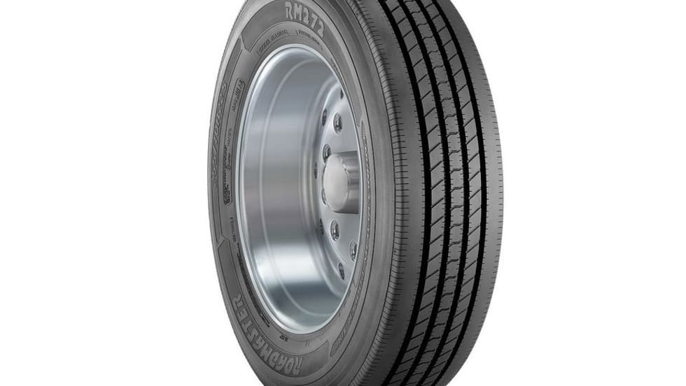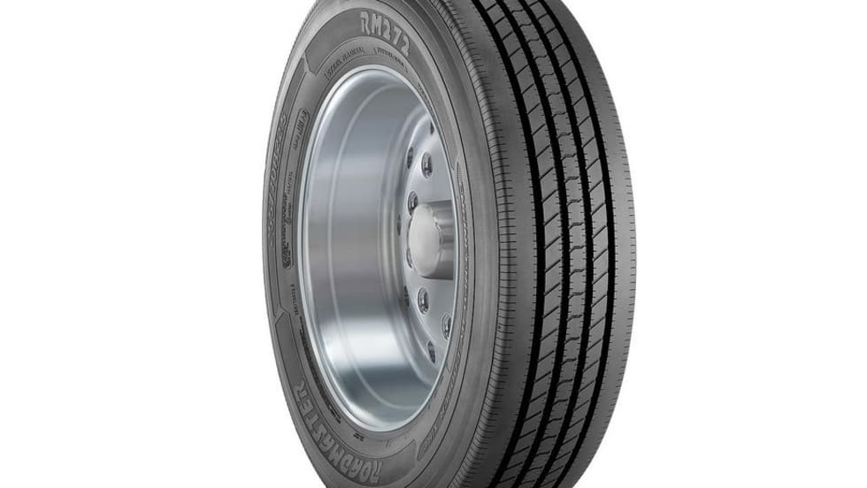 Roadmaster’s RM272 trailer tire is designed to withstand treadwear from use with a drop-deck trailer.