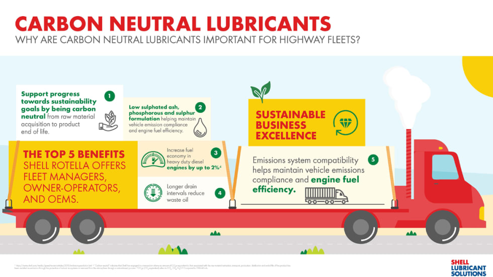 Shell will compensate for the carbon emissions produced by the Shell Rotella T6 Full Synthetic and T5 Synthetic Blend engine oils through the buying and selling of carbon credits.