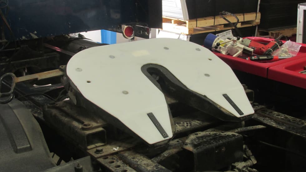 Minimizer’s Slick Plate is designed to get rid of grease and prolong the life of a fifth wheel by reducing friction.