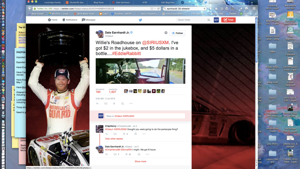 Read More →Fans of Dale Earnhardt Jr. got a peek into life on the road in the cab of a big rig last week as the NASCAR driver tweeted about riding to the Daytona race in the passenger seat of one of the race team's haulers.