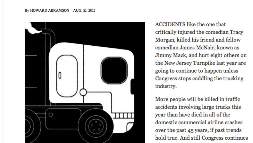 Read More →"The Trucks are Killing Us." The latest diatribe from an anti-truck group? No, it's an op-ed piece in the New York Times by a longtime former trucking editor. Deborah Lockridge writes about it in her All That's Trucking blog.
