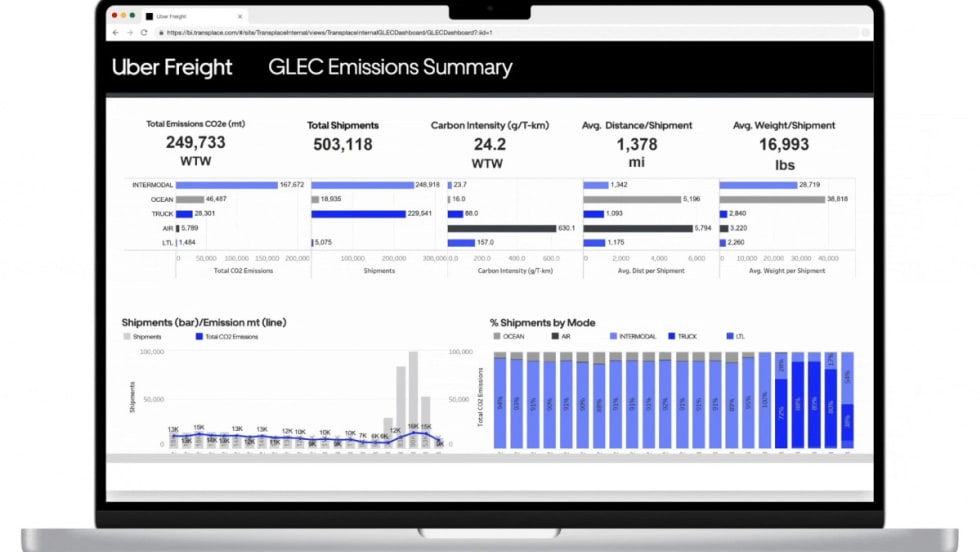 Uber Freight said shippers can monitor total emissions across the entirety of their logistics network, accounting for all modes of transportation across the globe — road to sea to sky — with its new Emissions Dashboard.
