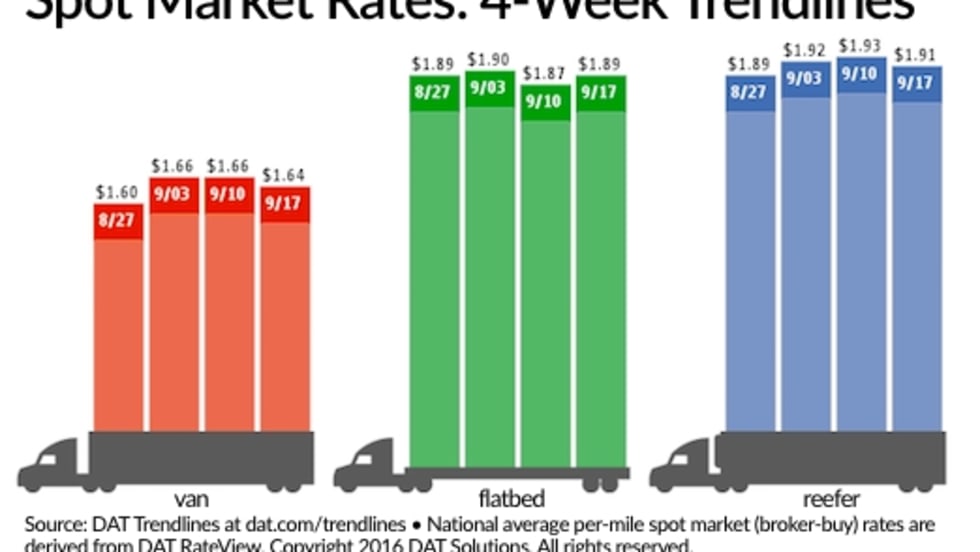The number of loads on the DAT network of load boards gained 20% during the week ending Sept. 17 compared to the week before and the number of trucks added 19% as the spot market rebounded during the first full week after the Labor Day holiday but it barely translated into higher rates.