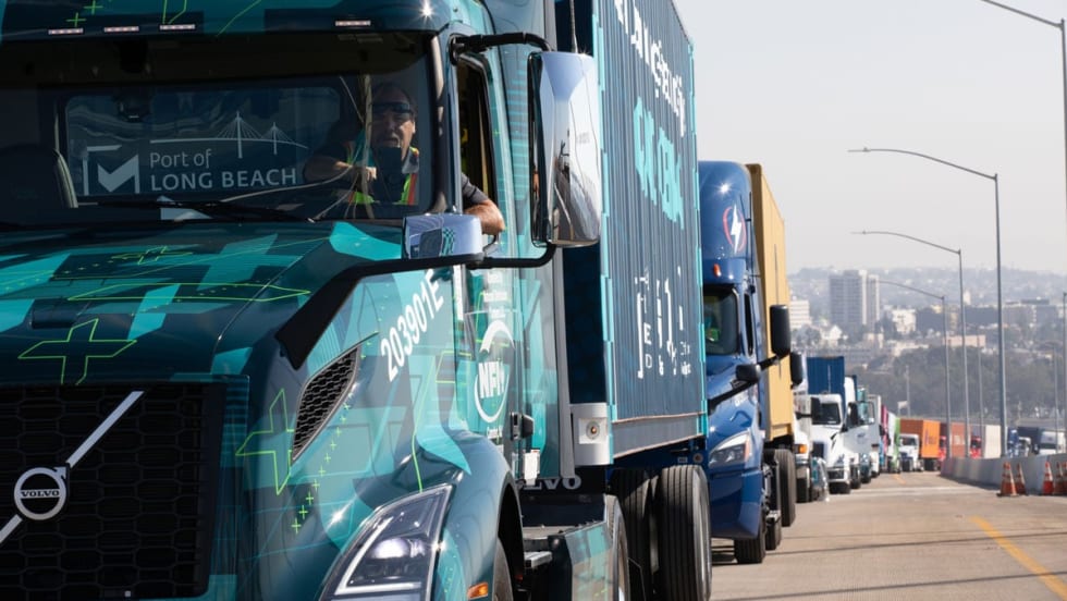 Battery-electric, natural gas, and hydrogen fuel cell trucks from the Port of Long Beach helped celebrate the new Port of Long Beach bridge in a clean trucks parade.