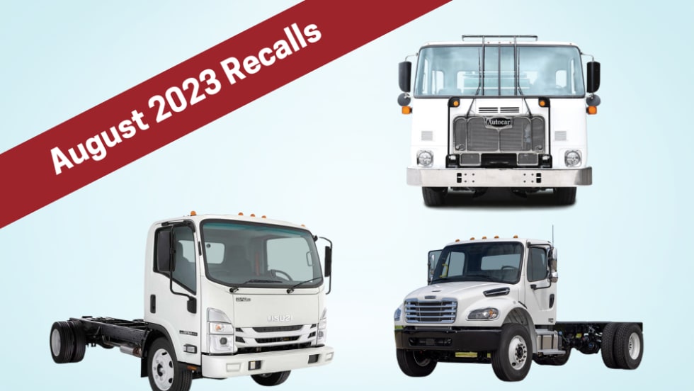 In August 2023, recalls were announced on vehicles from Isuzu, Daimler, Navistar, Yokohama, and Trail King.