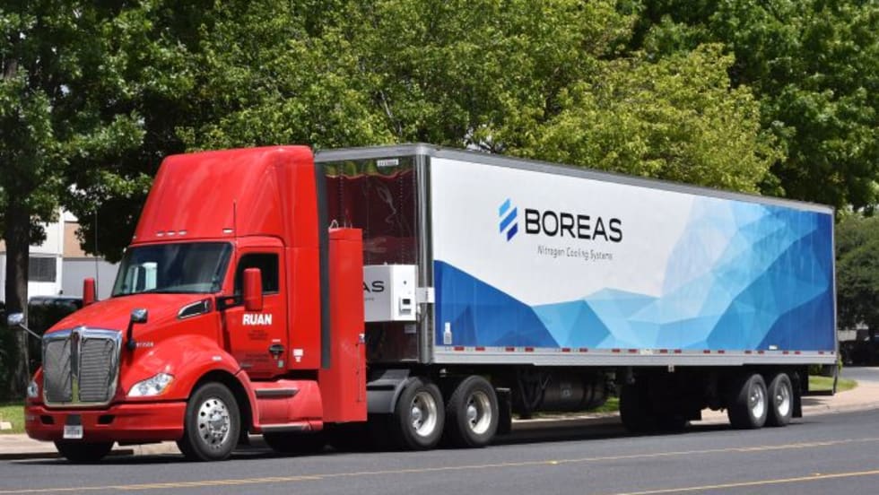 Ruan Transportation Management Systems partnered with Boreas to use its Nitrogen Cooling System for refrigerated trailers over the summer, running regular routes from Austin to Dallas.