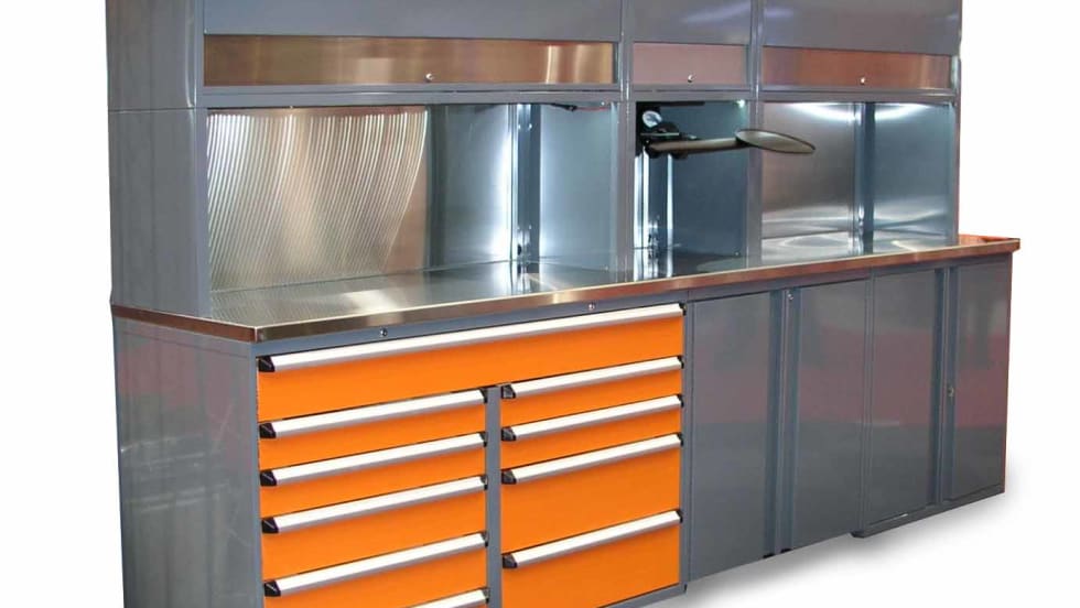 Lista International says its newly redesigned Automotive Service Bay System allows technicians to perform more efficiently and productively, with workbenches that provide plenty of room and optimal organization.