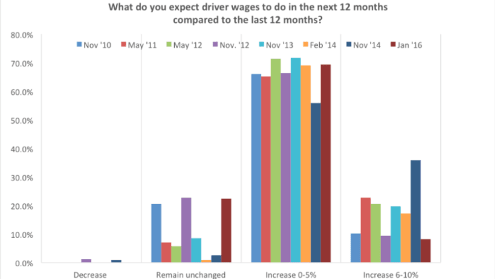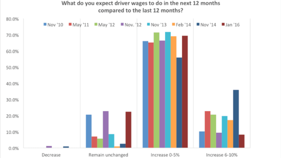 Driver wage increases may be limited by slowdown in freight in the fourth quarter of 2015, according to a carrier survey by Transport Capital Partners.