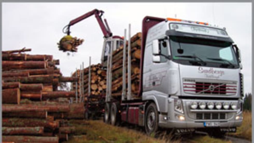 An all-Volvo fleet of nine trucks with I-Shift transmissions hauls logs 24 hours a day, seven days a week in southern Sweden. For a couple of hours, a group of North American truck editors in Sweden got a chance to follow first-hand the transport of timber from where the trees were harvested to a nearby sawmill