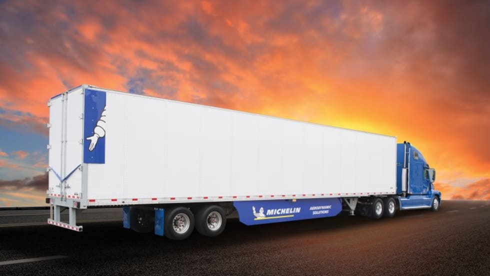 Michelin is getting into the trailer aero business. Its all-in-one Energy Guard aerodynamic system includes a patent-pending rear-facing Wake Reducer tab.