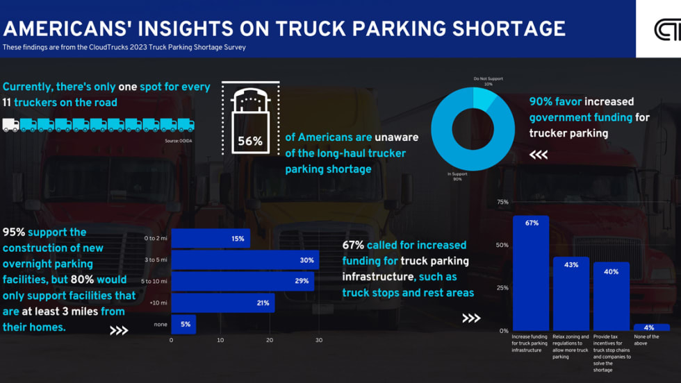 A CloudTrucks survey found that while Americans generally had a positive perception of trucking, more than half were unaware about the challenges of truck parking.