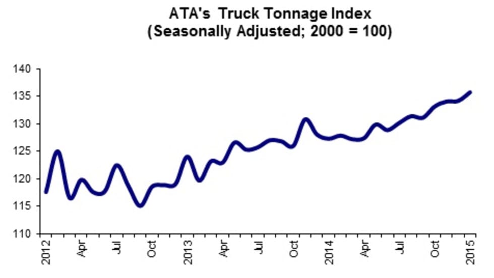 The For-Hire Truck Tonnage Index hit an all-time high of 135.7 in January according to the seasonally adjusted report from American Trucking Associations.
