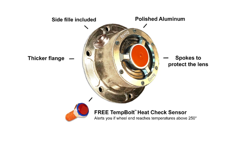 RevHD has produced a new line of severe-duty hub caps that can alert you if your wheel end reaches temperatures above 250 degrees Fahrenheit.