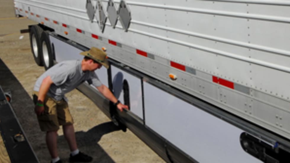 Read More →Everyone who sells a product talks up its advantages over the competition. Jim Reiman's claims about his Aerofficient side skirts include some that I've not heard before: 1 million-mile life, and ability to close the gap ahead of the trailer's wheels