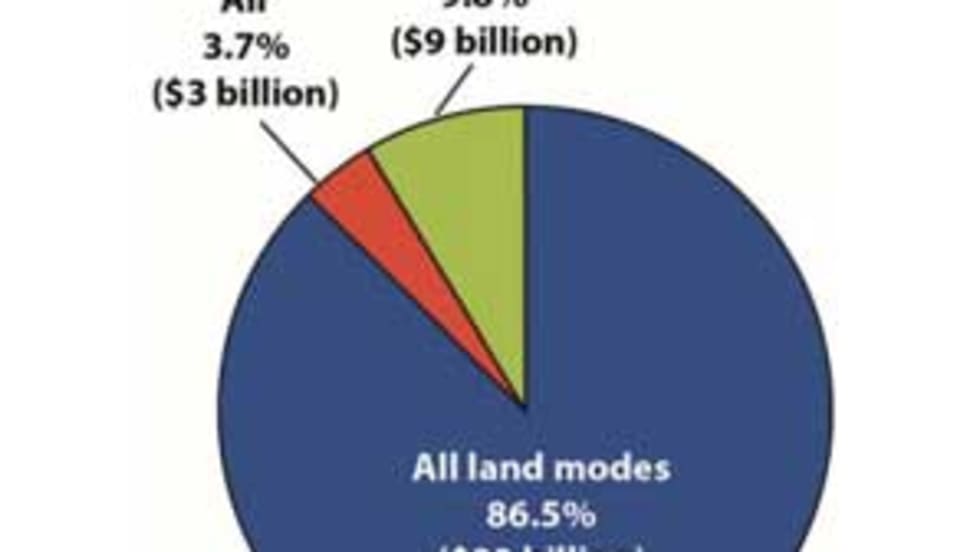 Trade using surface transportation between the United States and its North American Free Trade Agreement partners, Canada and Mexico, was 6.6% higher in June 2012 than in June 2011, totaling $82.6 billio