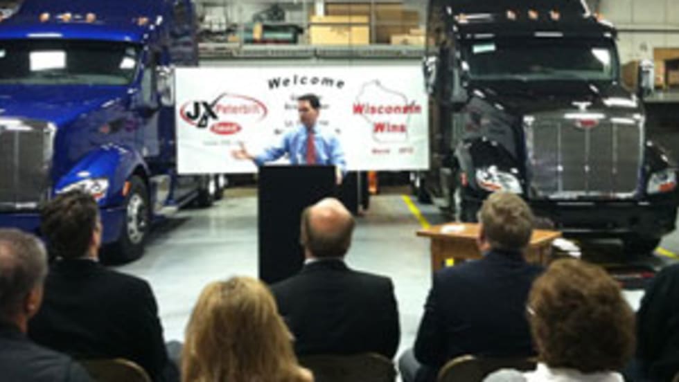 Peterbilt dealer JX Enterprises hosted Wisconsin Gov. Scott Walker as he signed Assembly Bill 450, popularly known as Wisconsin Wins, into law this week