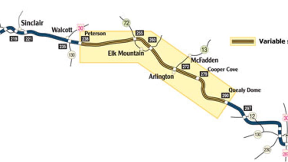With variable speed limit signs now operating on the full length of the section, the seasonal 65-mph speed limit will not resume this year on the 52-mile section of I-80 in Wyoming between Laramie and Rawlins, where it had been enforced for the past two severe weather seasons