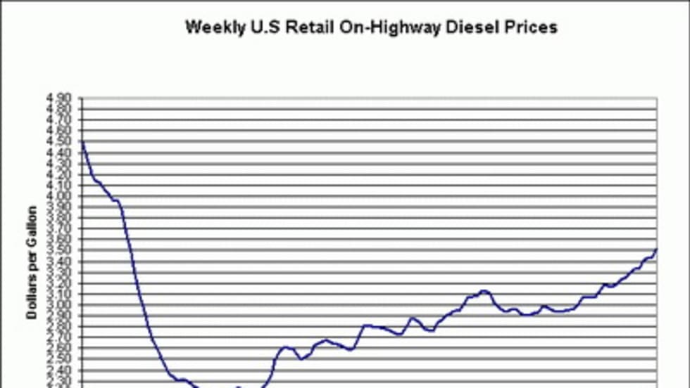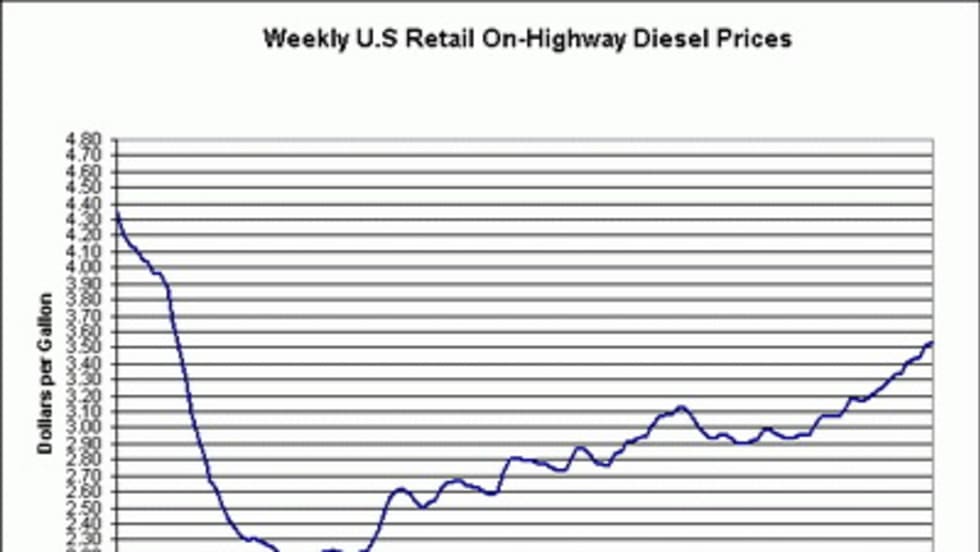 Diesel prices continued their upward trend this week, rising an alarming 7.5 cents to hit a new post-2008 high of $3.513