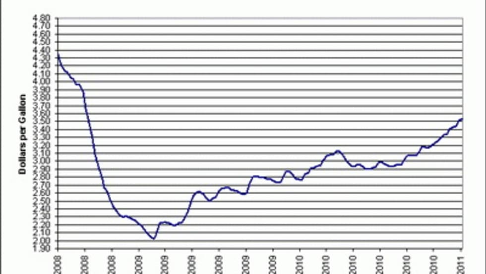 Read More →The Department of Energy's monthly fuel price projections continue to rise in lockstep with the price of crude oil and diesel fuel. The monthly projection for February, up 3 cents from the January forecast, sees diesel fuel averaging $3.43 for 2011 and $3.51 for 2012
