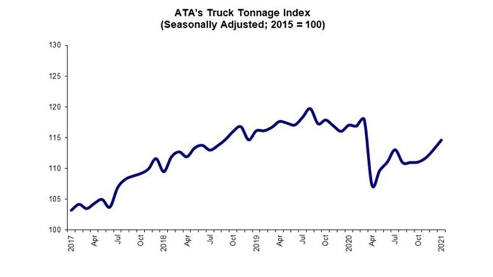American Trucking Associations logged an advanced seasonally adjusted For-Hire Truck Tonnage Index increase of 1.4% in January after rising 1.2% in December 2020.