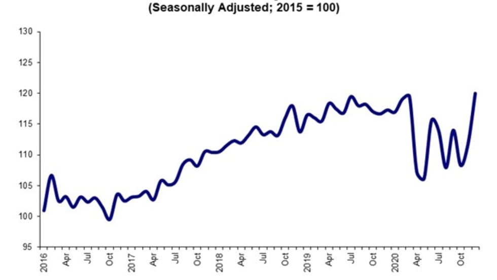 Truck tonnage ended 2020 on high note, according to American Trucking Associations, as its seasonally adjusted For-Hire Truck Tonnage Index increased 7.4% in December after rising 3.2% in November.
