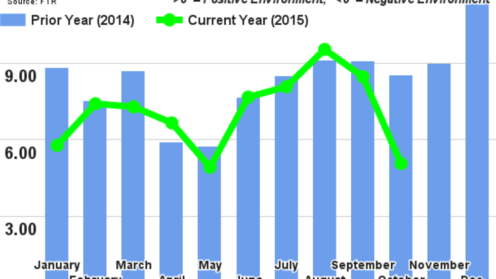 The October FTR index fell by more than three points from September to a reading of 5.06, in line with previous predications from FTR.
