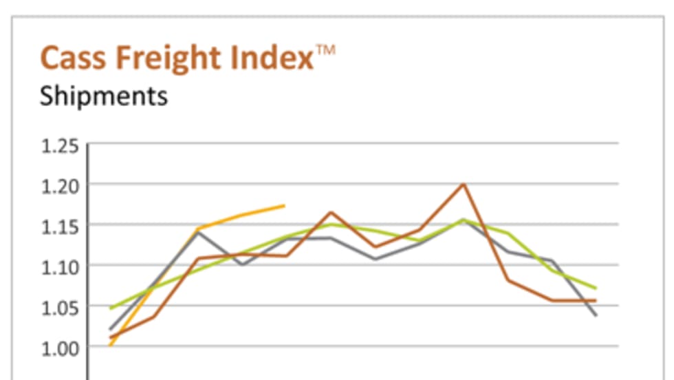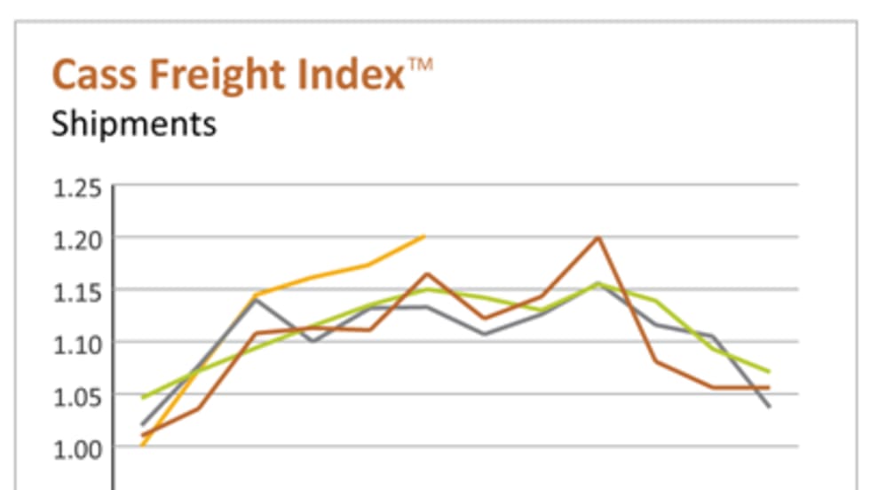 North American shipment volumes and total spending on freight both dropped in January, according to the Cass Freight Index, but they were also at their highest level for the month in at least three years.