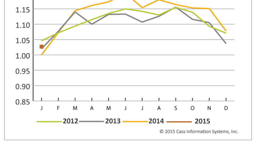 The newly released November Cass Freight Index shows a drop in total freight expenditures of 0.7% and a corresponding decline in shipment volumes of 0.2%, however the level was higher than expected, pointing to strong finish for 2014.