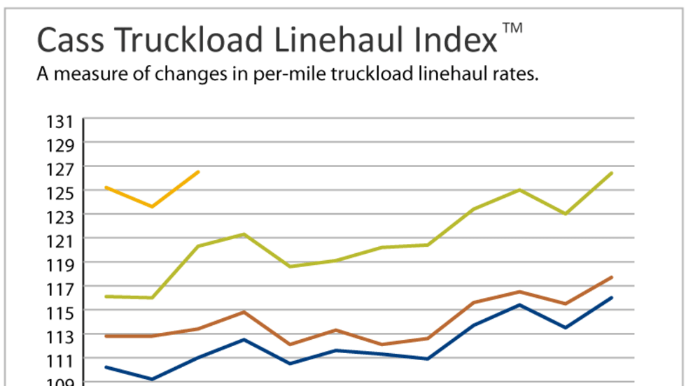 Newly released figures show the Cass Truckload Linehaul Index once again remained higher in May than in each of the past three years, coming in 3.5% higher than May 2014 and 9.5% higher than two years ago.