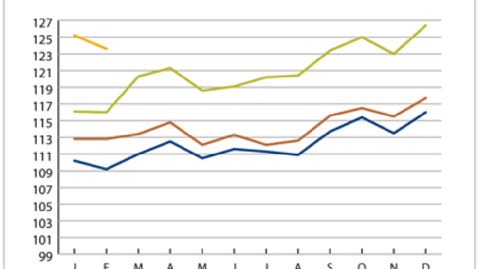 A measure of freight rates in one trucking sector improved in February over the past year, but declined from the month before.