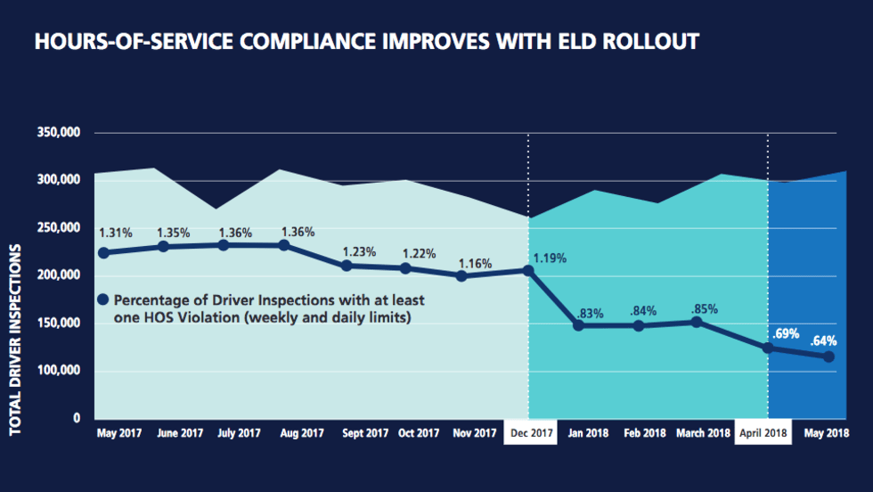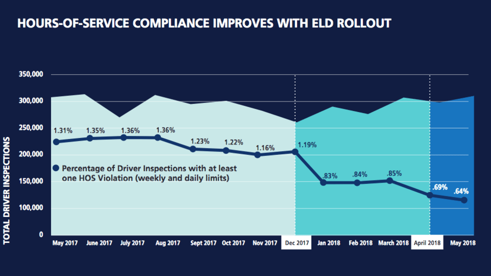 The electronic logging device mandate is working, said the Federal Motor Carrier Safety Administration, as it posted a new infographic on its website it plans to update monthly.