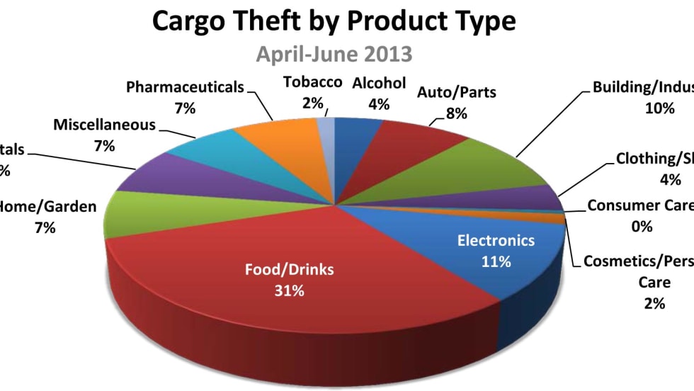 In the second quarter of 2013, the logistics security services provider FreightWatch International recorded a total of 194 thefts in the United States, a 27% increase in value and a 12% decrease in volume from the same time a year ago.