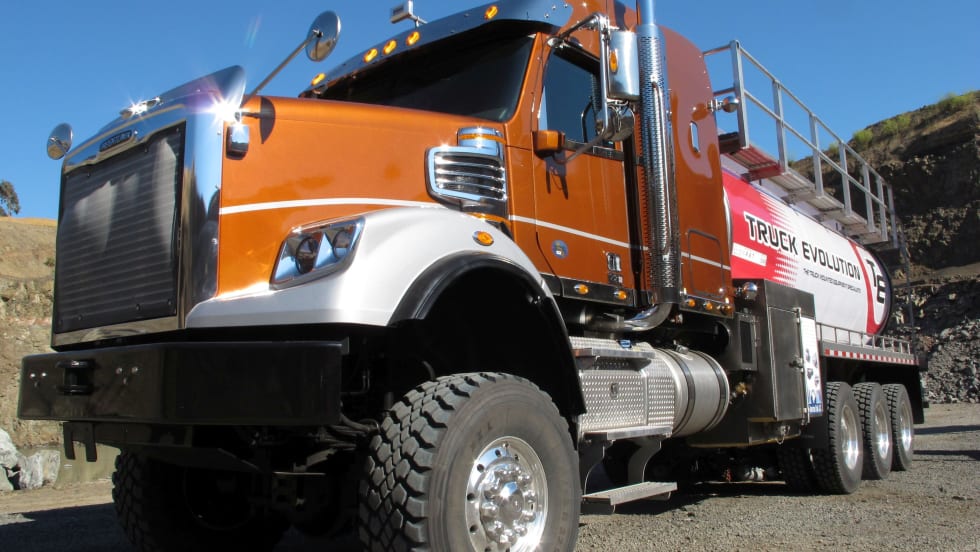 Freightliner can build its 122SD heavy-haul vocational chassis into any number of extreme configurations, but this oil-field hauler is one to be reckoned with. This truck lives for roads that would break your average highway hauler in half.