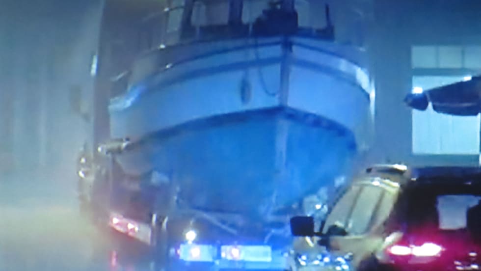 Read More →The family comes upon a big rig transporting what looks like a tug or fishing boat, strapped to a special trailer. The little boy looks up at the boat and sees a three-masted schooner, foundering and in peril!