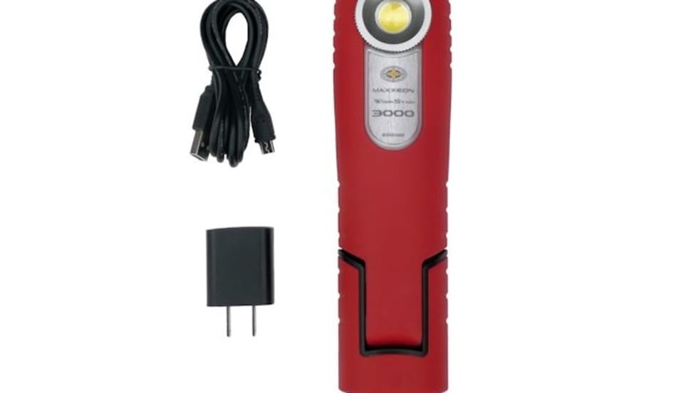 The Maxxeon WorkStar 3000 Technician’s Work Light is a handheld, cordless, rechargeable LED light.