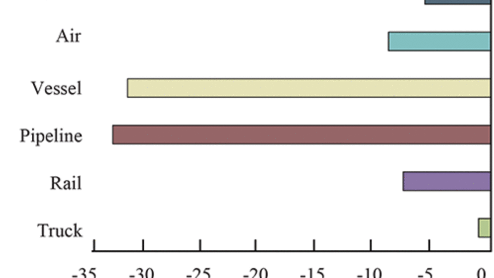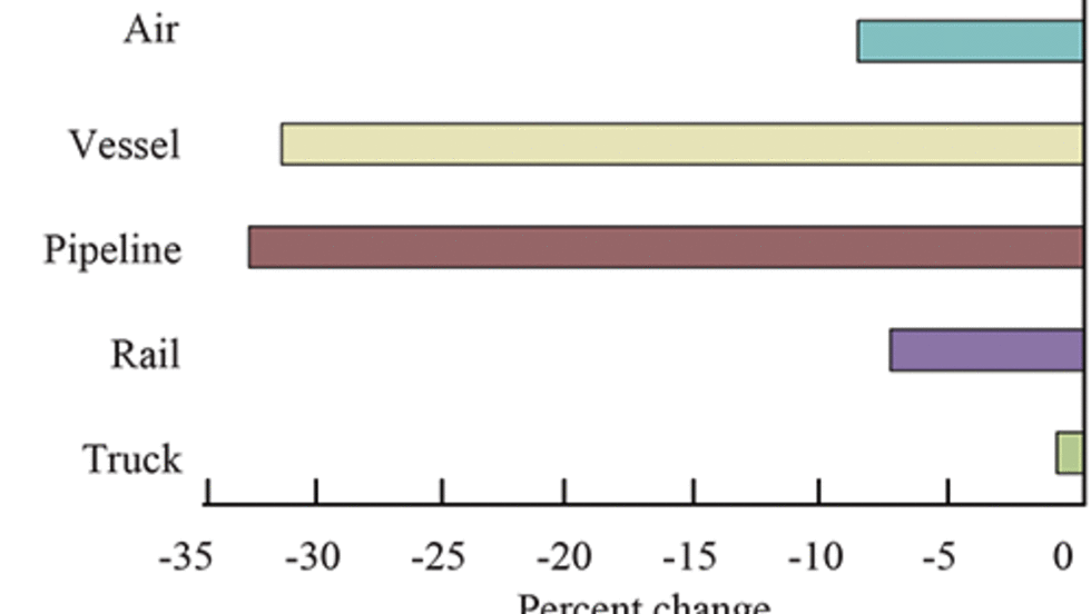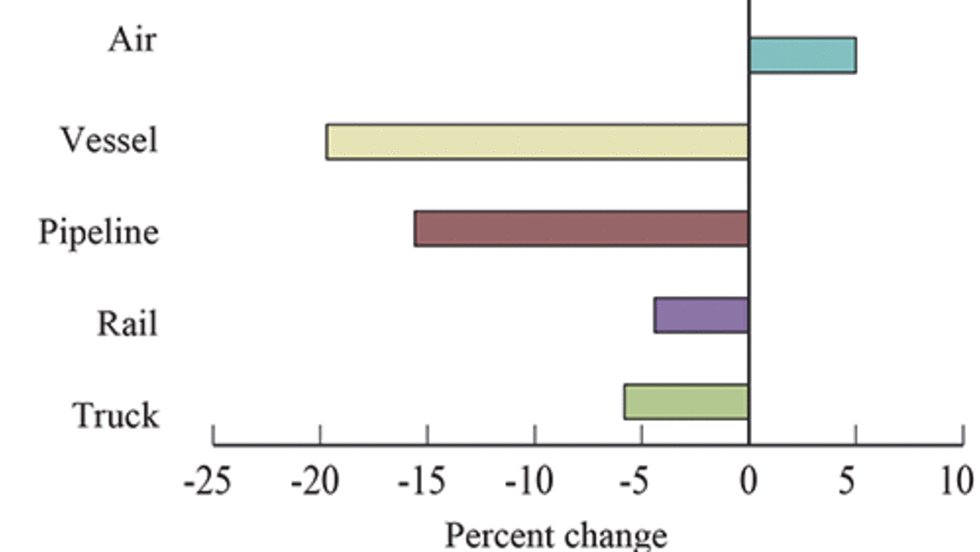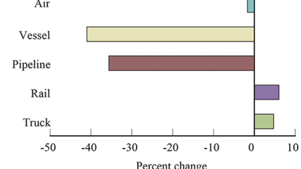 Trucking and four other transportation modes carried less U.S. freight by value with North American Free Trade Agreement (NAFTA) partners Canada and Mexico in March 2016 compared to a year earlier, according to a new Transportation Department report.