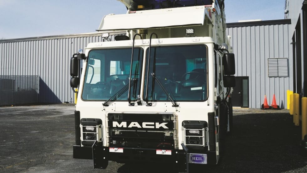 Mack’s LR model features high-powered, smart hydraulics and finely tuned details to help refuse fleets move trash fast.