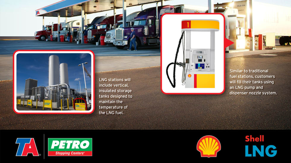Officials with the truckstop chain, Travel Centers of America, indicated this week when they plan to open their first liquefied natural gas filling stations in cooperation with Shell targeting commercial vehicles.