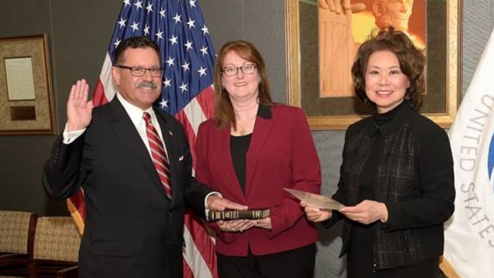 Raymond Martinez has been officially sworn in by U.S. Transportation Secretary Elaine Chao as the sixth administrator of the Federal Motor Carrier Safety Administration.