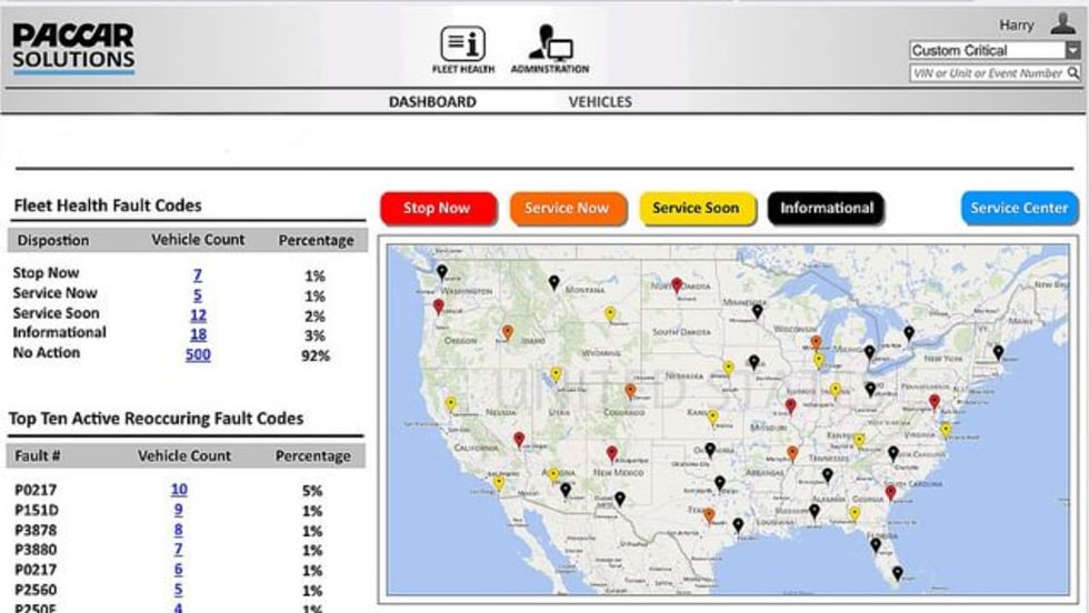 Peterbilt’s SmartLinq remote diagnostics system provides customers with real-time fleet health information to alert fleet managers to vehicle problems and help them manage service.