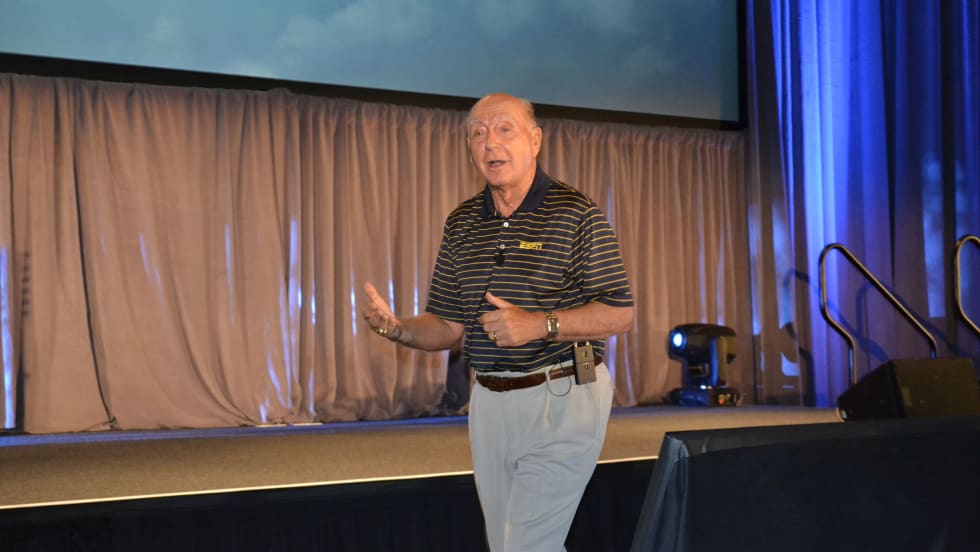 ESPN sportscaster Dick Vitale closed out the conference's opening session, which was filled with looking back on the company's 20-year history and looking forward to what it has to offer clients now and in the near future.