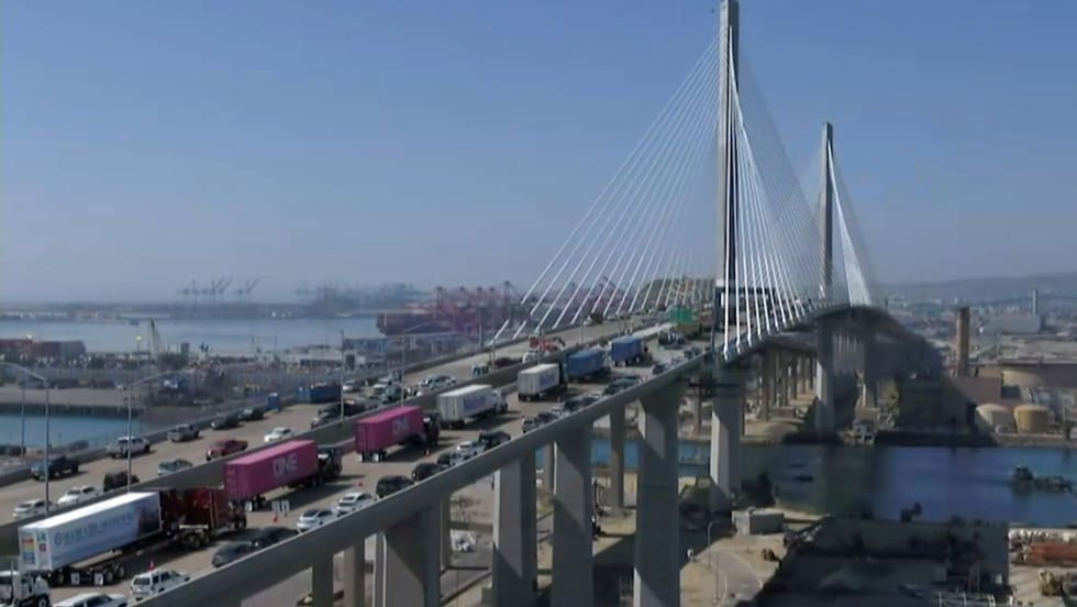A procession of clean, zero-emissions and near-zero-emissions drayage trucks were a highlight of ceremonies marking the opening of a new bridge at the Port of Long Beach.