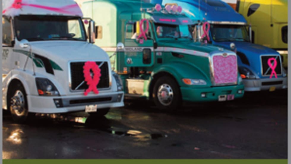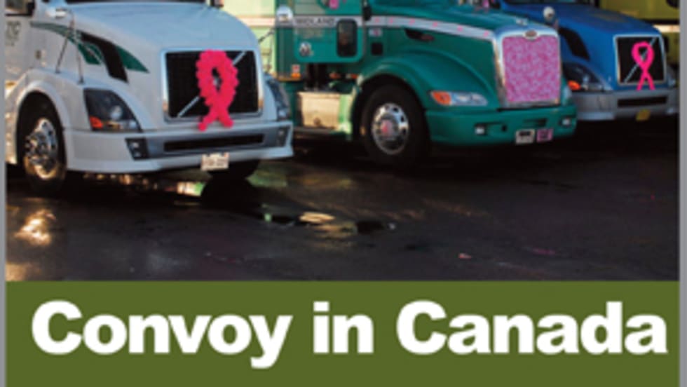 Drivers were out early this past Saturday morning near Moncton, New Brunswick, scraping the frost off their trucks and decorating them in traditional pink in preparation for the first Atlantic Canada Convoy for a Cure. The event was held in the Canadian province of New Brunswick. Fifteen female drivers and 31 of their male partners, supporters, and friends formed a mile-long truck convoy for the 50-mile trek along the Trans-Canada Highwa